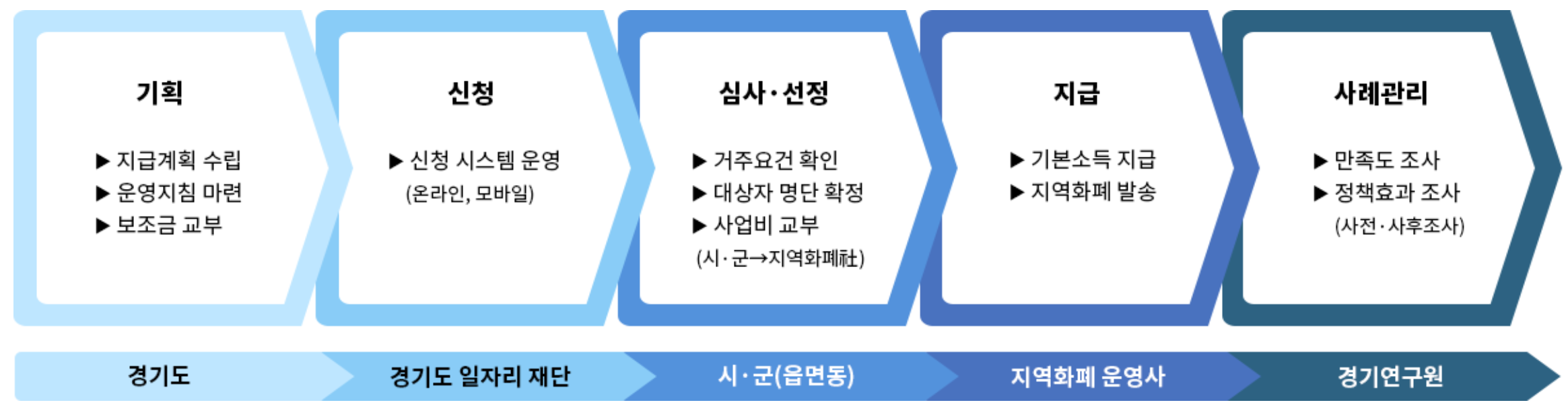 거주요건 확인> 대상자 명단 확정 > 사업비 교부(시, 군에서 지역화폐사)