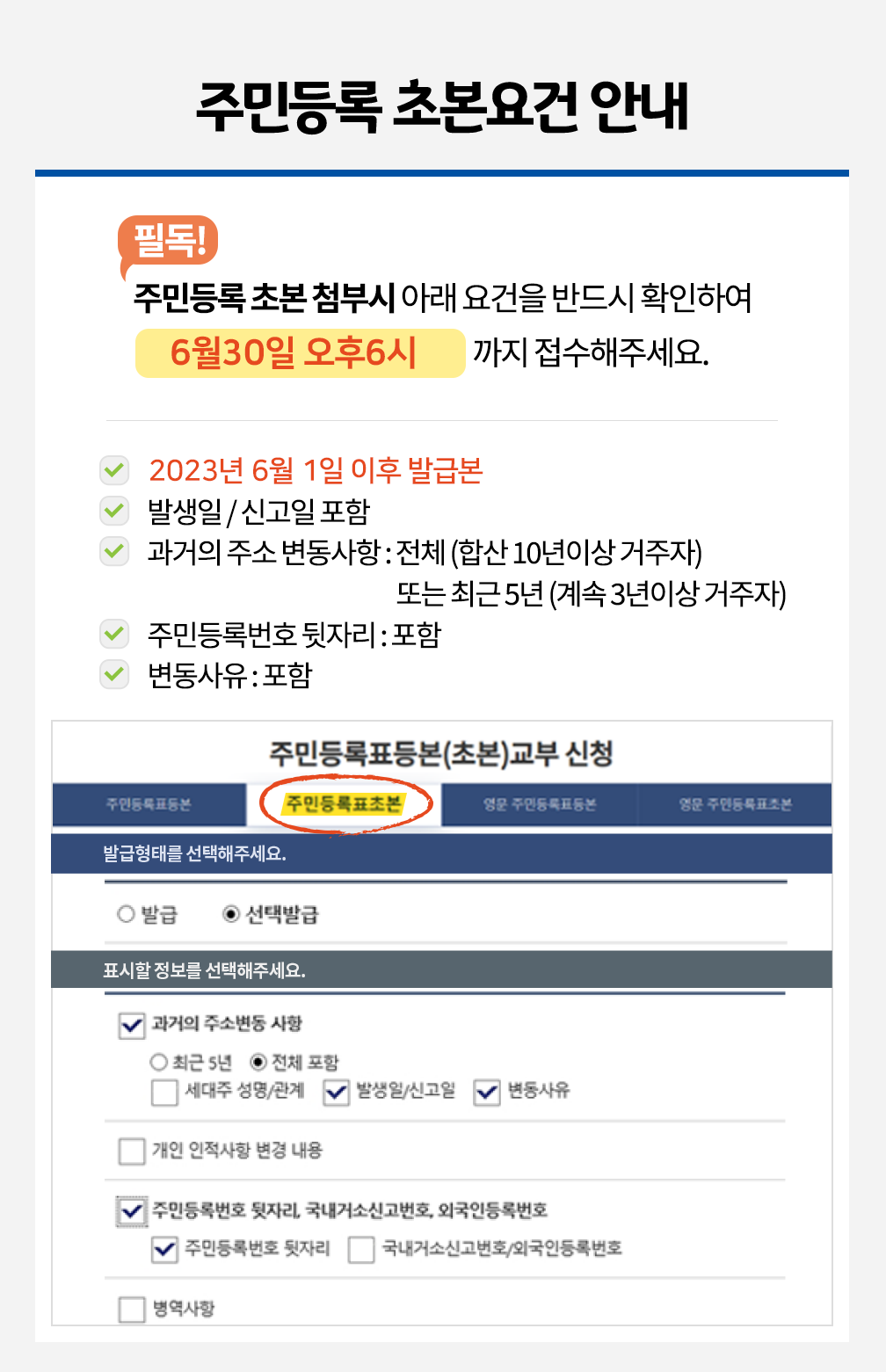2. 주민등록초본(신청기간 내 발급본) : 마이데이터 서비스 이용 동의 시 주민등록초본 자동 제출