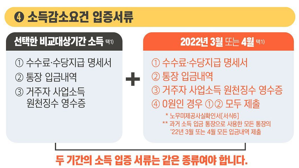 아래 두 기간의 소득 입증 서류는 같은 종류여야 합니다.
