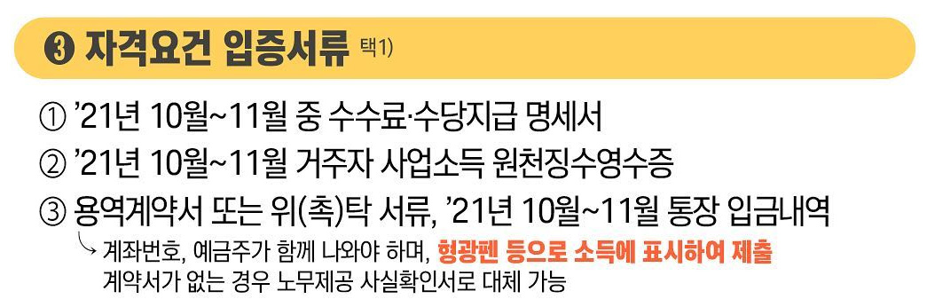 2021년 10월 ~11월 특고, 프리랜서로서 50만원 이상 소득이 발생한 고용보험 미가입자여야 합니다.