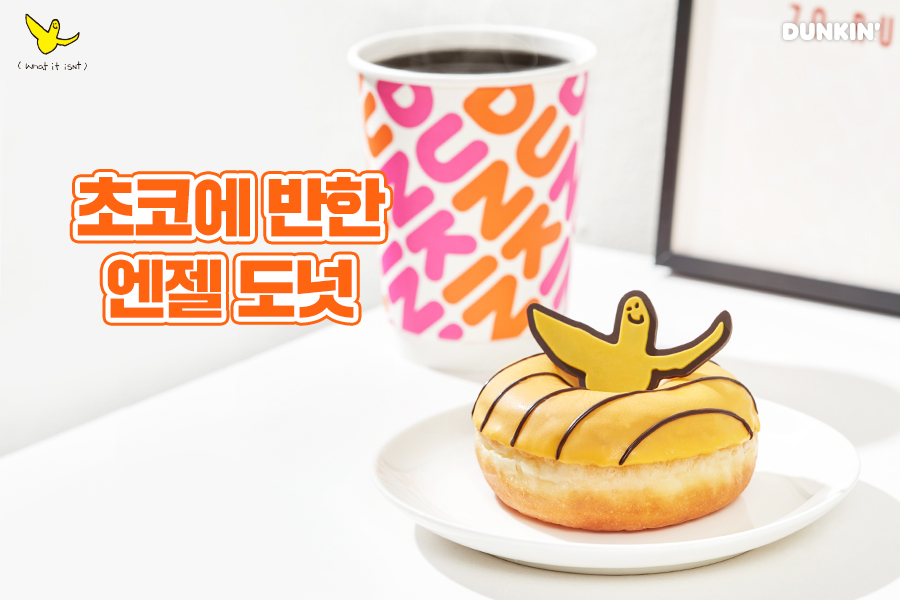초코에 반한 엔젤 도넛은 바바나 초코 코팅을 한 도넛위에 귀여운 와릿이즌 엔젤을 토핑한 도넛이라고 하네요.