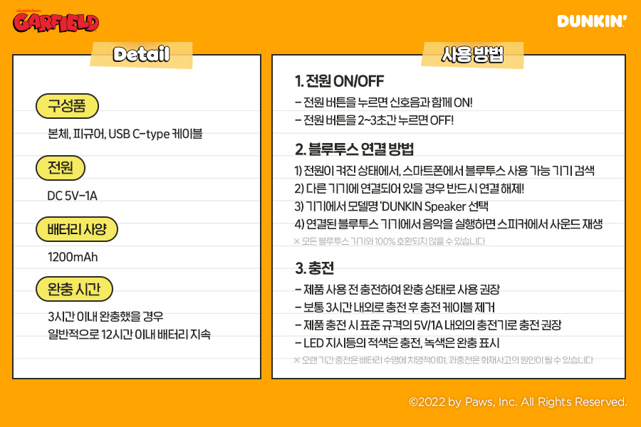 던킨 가필드 블루투스 스피커 구성 보기