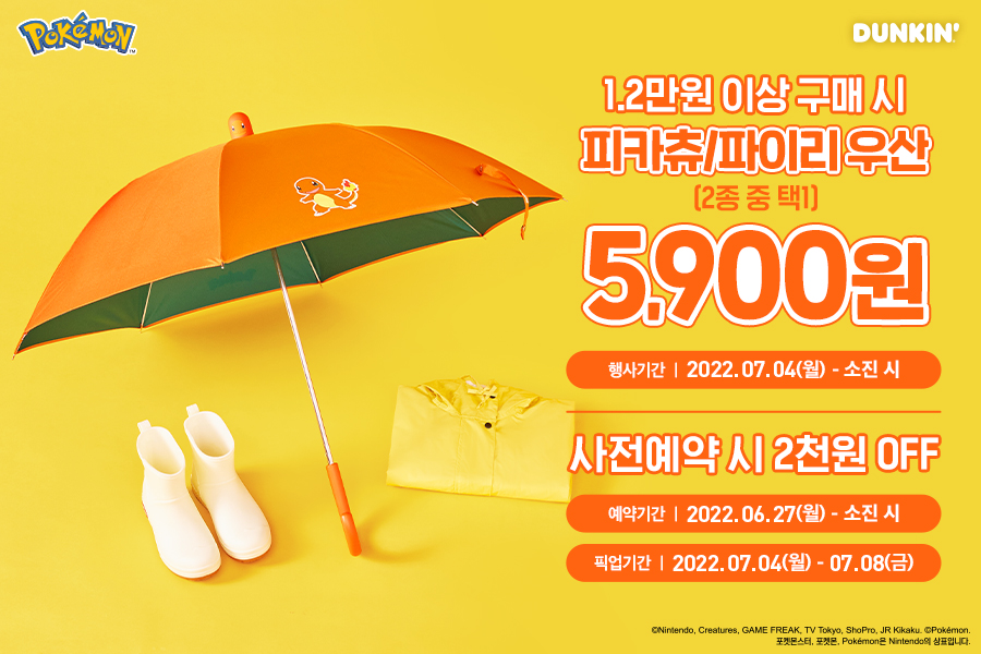 던킨 도너츠 포켓몬 '피카츄 파이리 우산' 사전 예약