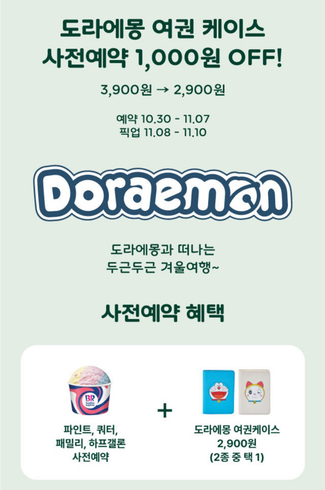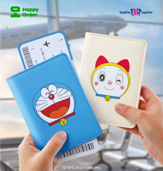 배스킨라빈스가 도라에몽 여권케이스를 md로 냈어요.
