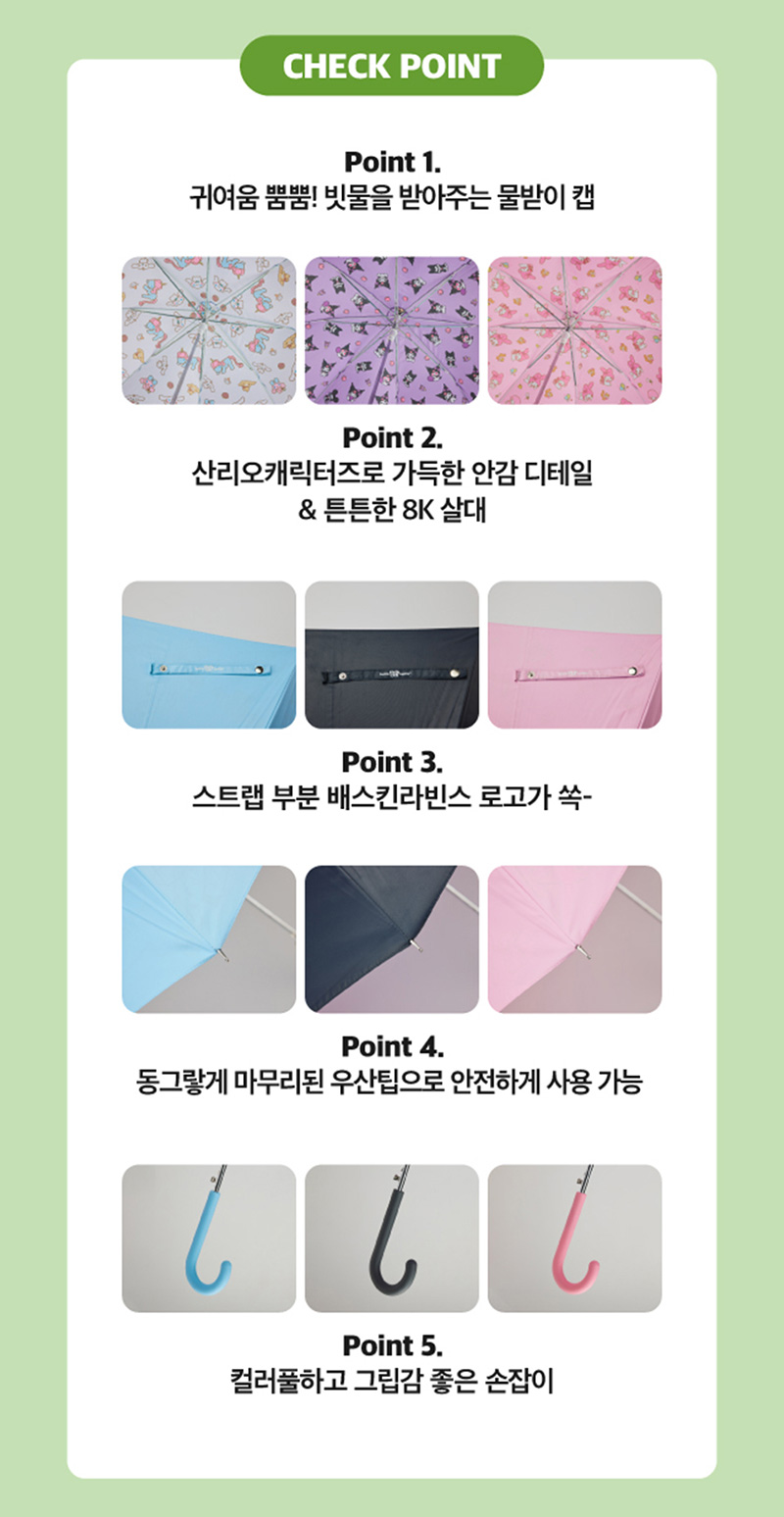 신리오캐릭터즈로 가득한 안감 디테일 & 튼튼한 8K 살대