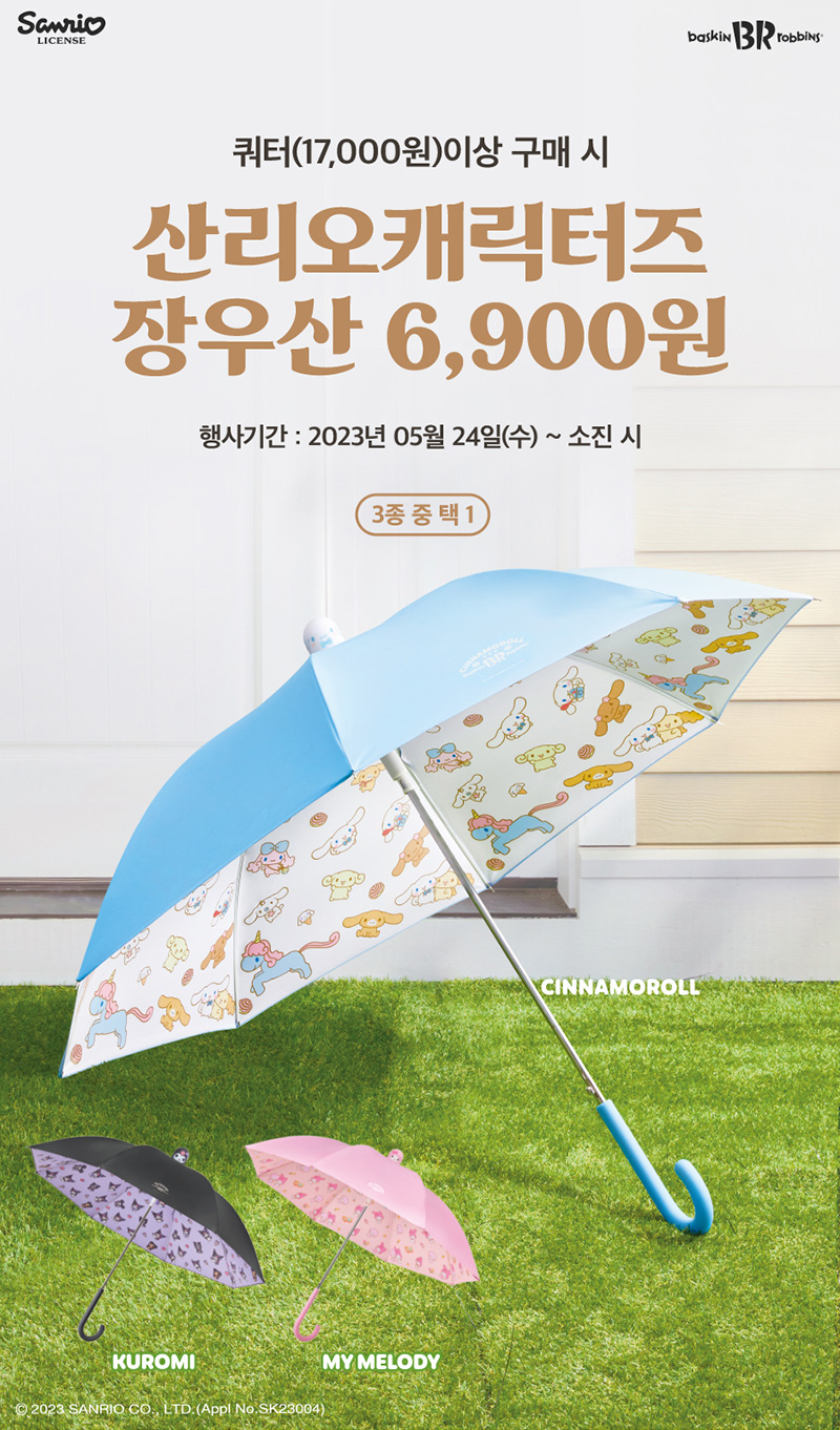 - 쿼터, 패밀리, 하프갤론 또는 17,000원 이상 구매 시, 산리오캐릭터즈 장우산 6,900원에 구입하실 수 있어요.