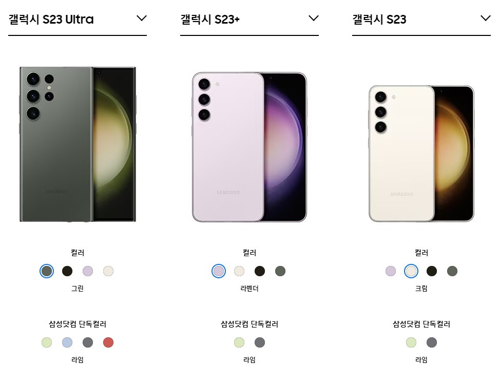 - S23 : 115만 5000원 (256GB), 127만 6000원 (512GB)