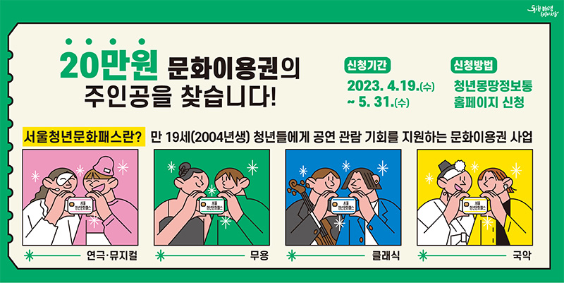 20만원 받아갈 2004년생 집중! 서울청년문화패스로 공연 볼 사람 모집