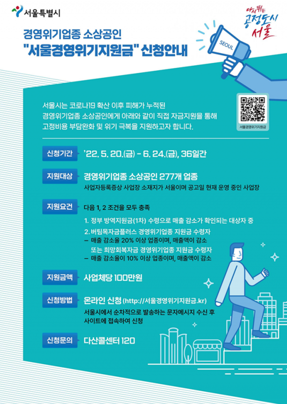 서울시에서 코로나 19로 인해 장기간 피해를 입은 경영위기업종 소상공인을 지원합니다.