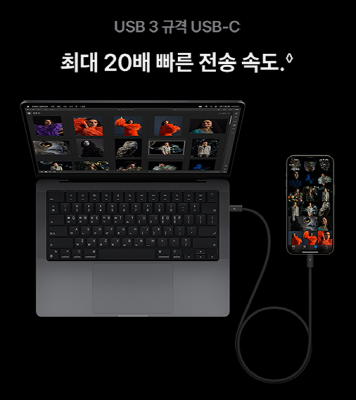 아이폰15프로는 새로운 USB 컨트롤러로 아이폰 중 처음으로 USB 3 속도를 갖추게 돼 전송 속도가 빨라졌습니다.