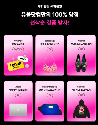 발렌시아가 르 카골 숄더백, 샤넬 로퍼, 애플 맥북 에어 15, 메종 마르지엘라 글램 스포츠 바디백, 슈프림 후드티는 사전알람 신청한 고객님 중 추첨하여 당첨되신 분께 개별 연락 드릴 예정입니다.