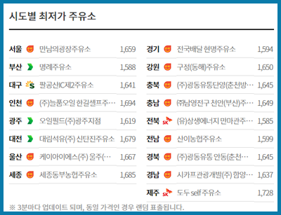 - 시/도/군/구별 최저가 TOP5 주유소 정보 제공
