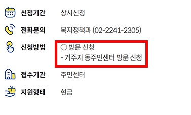 때에 따라서는 위의 내용처럼 [방문신청]을 하셔야 할 수도 있으니 꼭 신청방법을 확인해 주세요.
