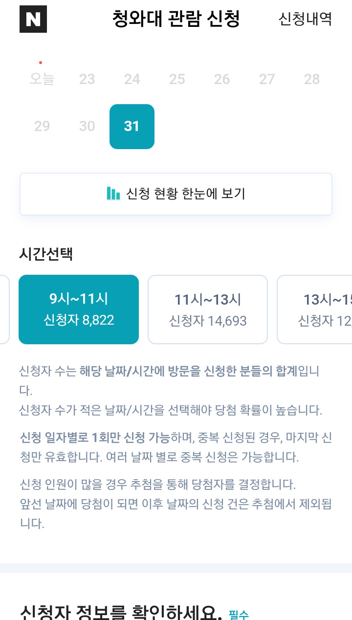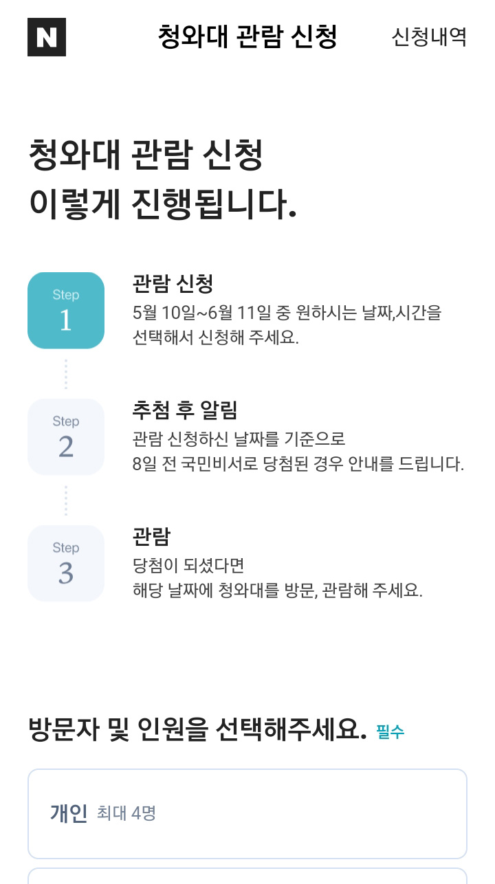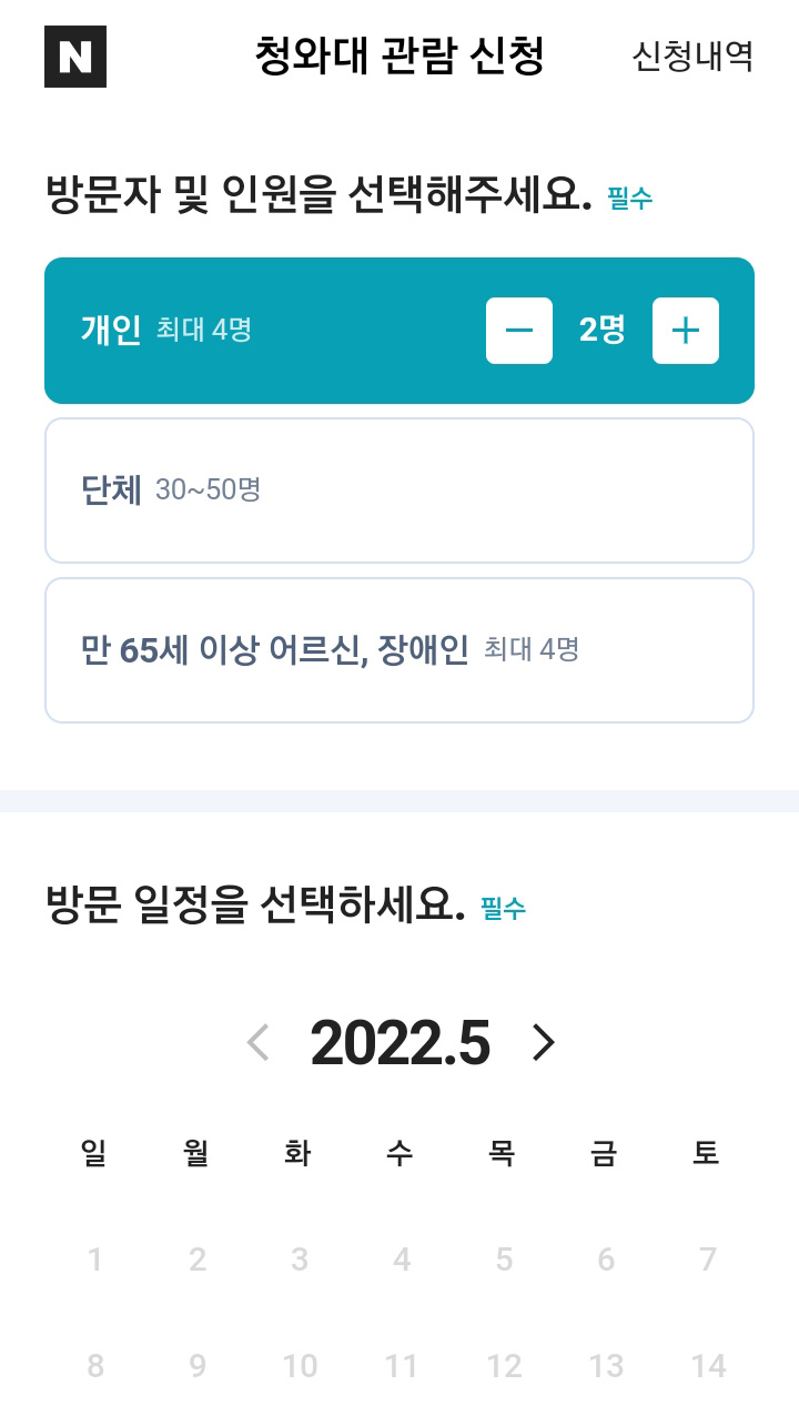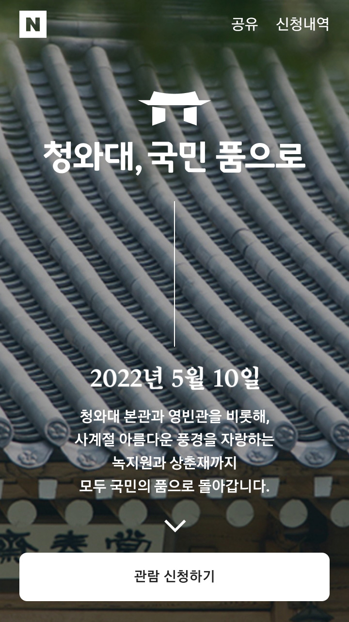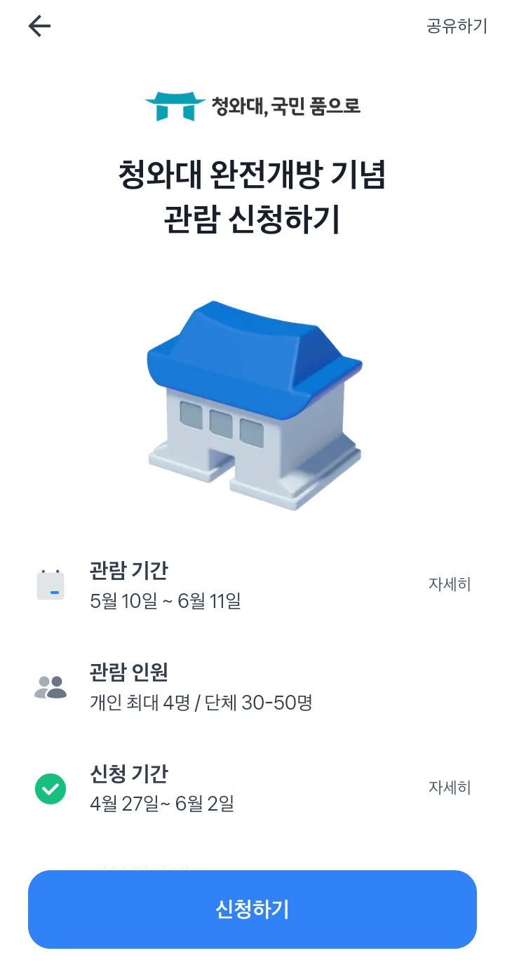 그러면 청와대 관람 신청 버튼이 보입니다.
