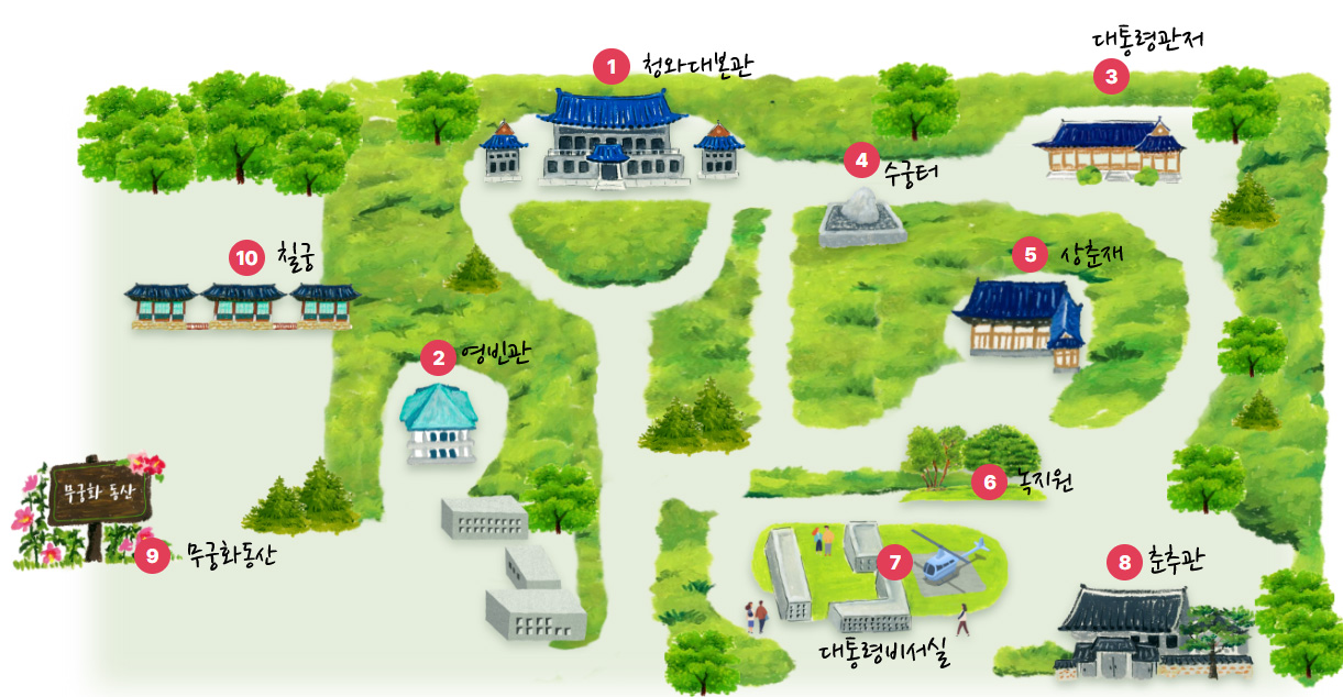 다만 청와대 앞 사랑채에 가시면 간단한 음료와 간식을 판매하는 카페가 있고, 잠시 쉬었다 가실 수 있는 휴게 공간도 마련할 예정입니다.