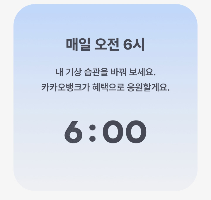 매일 오전 6시에 일어나서 카카오뱅크에 접속하면 3가지 혜택을 받을 수 있는 이벤트입니다.