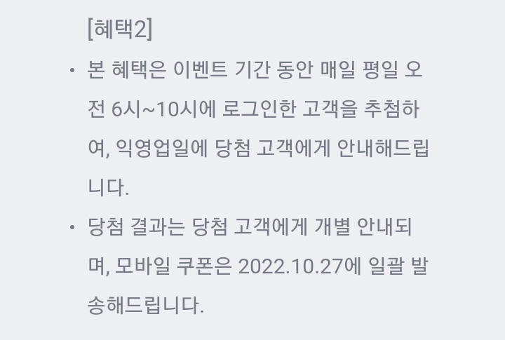 모바일 쿠폰은 10월 27일에 일괄 발송해 준다고 해요.