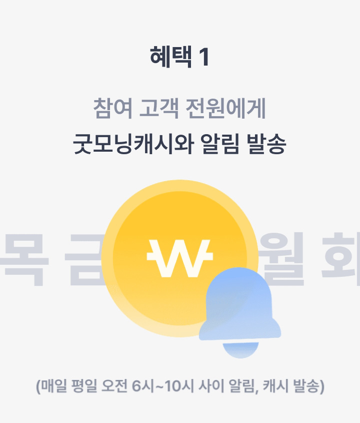 참여 고객 전원에게 굿모닝캐시와 알림 발송을 드려요.