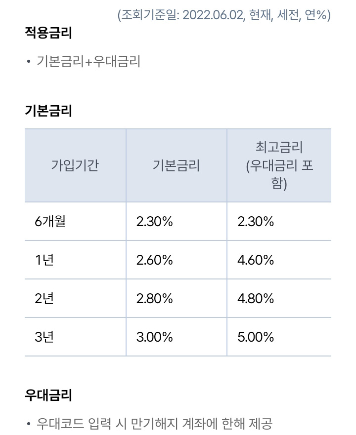 기본 금리를 보시면 6개월은 해당이 안되지만 1년, 2년, 3년 늘어남에 따라 최고 금리가 점점 늘어나요.