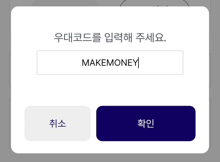 우대코드 버튼을 누르면 입력 버튼이 나오는데 MAKEMONEY를 입력해 줍니다.