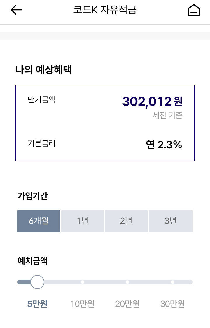 나의 예상혜택에 보시면 예치금과 가입기간에 따라 세전 만기 금액을 확인하실 수 있어요.