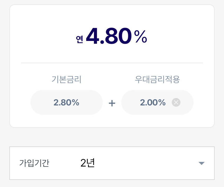 가입기간 2년은 연 4.80% 입니다.