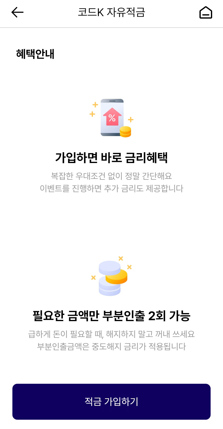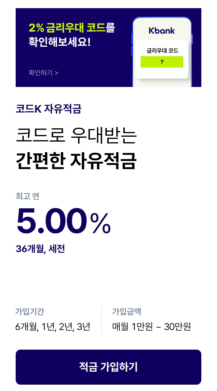 코드로 우대받는 간편한 자유적금 - 코드K 정기적금