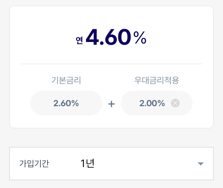 가입기간 1년은 연 4.60% 입니다.
