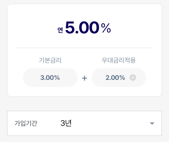 가입기간 3년은 연 5.00% 입니다.