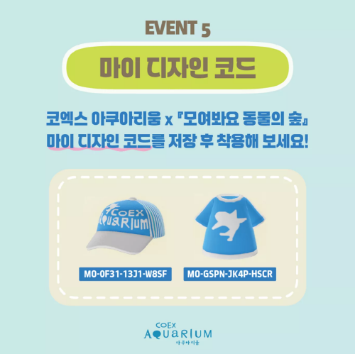 코엑스 아쿠아리움 <모여봐요! 동물의 숲> 마이 디자인 코드를 저장 후 착용해 보세요!