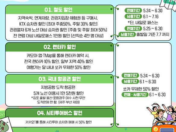 6월에 국내 여행을 하실 분들은 할인도 받으시고 즐거운 여행도 되시길 바랄게요.