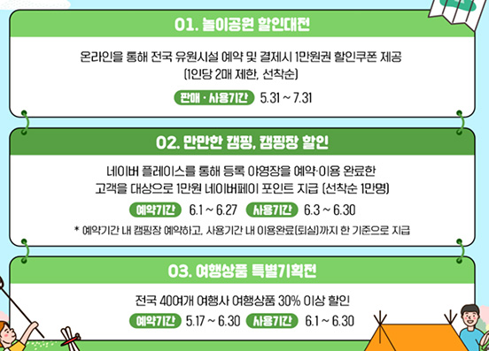 온라인을 통해 전국 유원시설 예약 및 결제 시 1만 원권 할인쿠폰 제공 (1인당 2매 제한, 선착순)