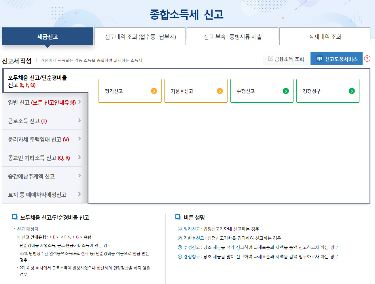 홈택스 사이트에 가입한 후 종합소득세 소득 신고 및 납부 메뉴에서 본인의 소득 상황에 따른 정기신고를 진행하면 됩니다.