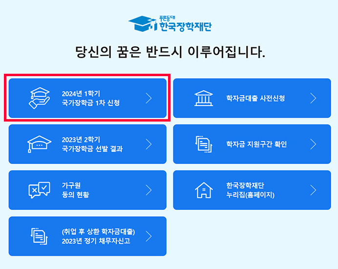 한국장학재단 누리집 홈페이지(www.kosaf.go.kr) 또는 모바일 앱 (mo.kosaf.go.kr/apps)에서 신청 가능합니다.