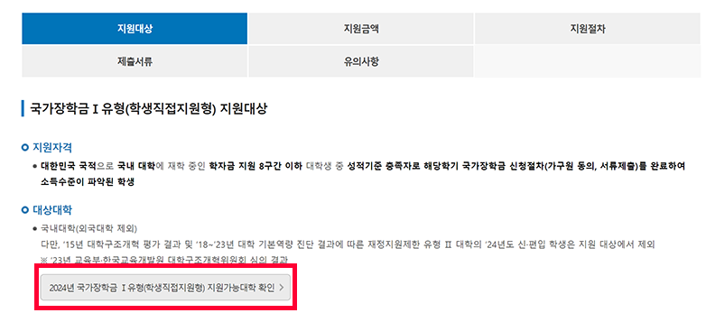 국가장학금Ⅰ유형(학생직접지원형) 지원대상