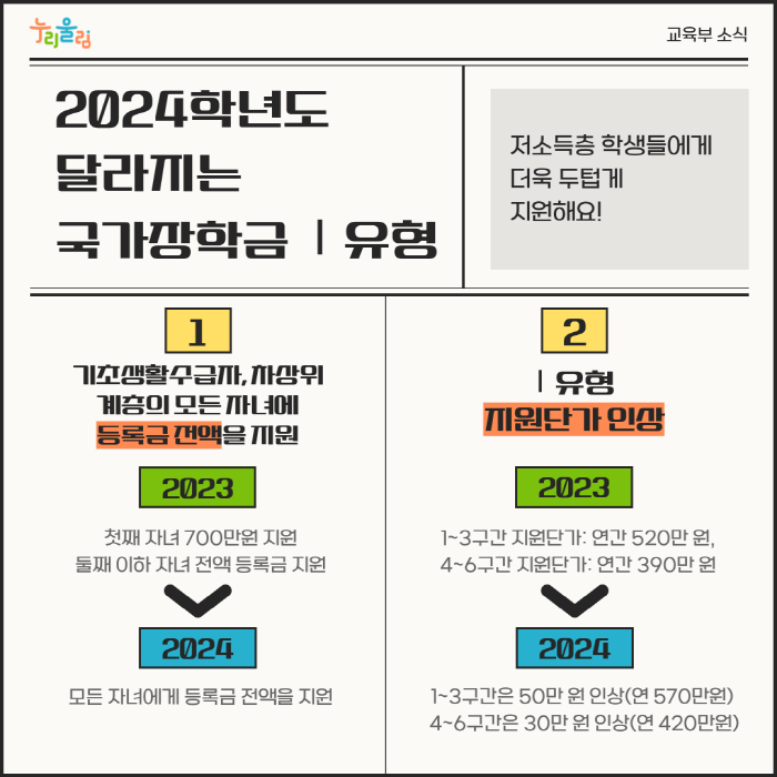 2024학년도 국가장학금이 이전과 달라진 점을 알려드리겠습니다.