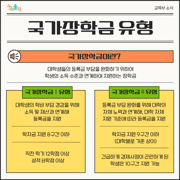 오늘은 국가장학금의 신청방법, 신청기간과 지급일, 신청조건, 학자금 지원구간, 신청유형에 대해서 알아보겠습니다.