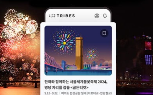 공식 홈페이지에서 골든티켓 이벤트 버튼 클릭하고 트라이브 앱을 다운로드하고, 간편 가입 후 불꽃축제 <골든티켓> 이벤트 배너를 클릭하여 입장해 주세요.