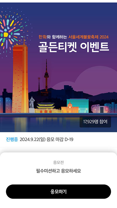 한화에서 진행하는 서울세계불꽃축제는 명당에서 축제를 볼수 있는 골든티켓 이벤트를 하는 거 아시나요?