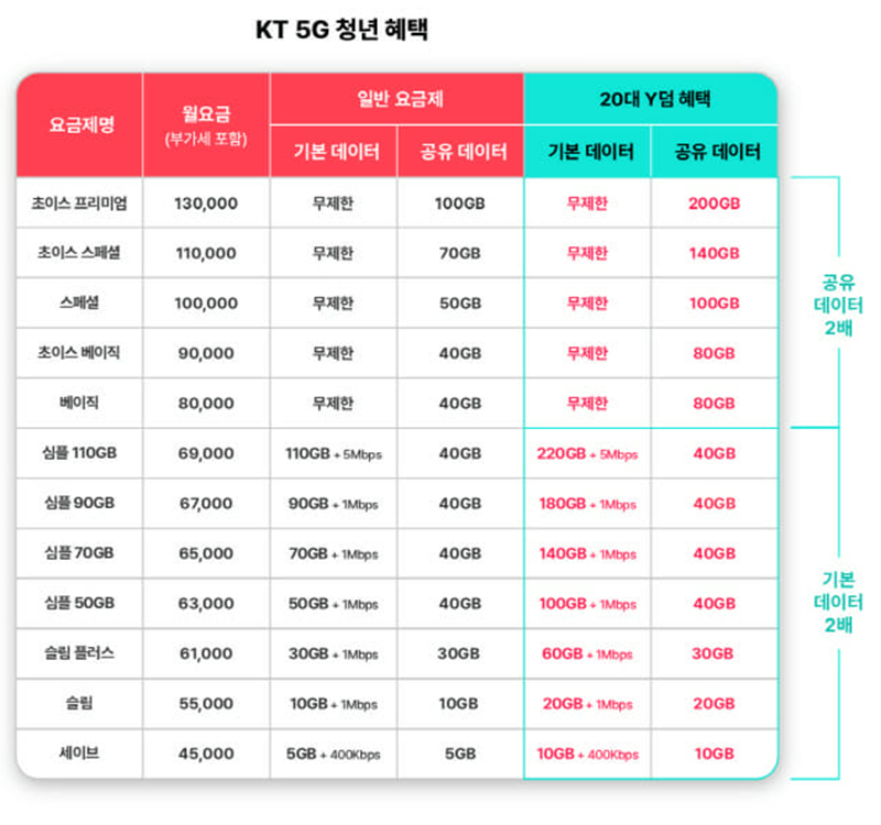 KT 청년요금제 Y덤