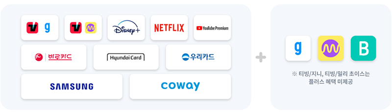 ( 티빙/지니, 티빙/밀리 초이스는 플러스 혜택이 제공되지 않습니다.)