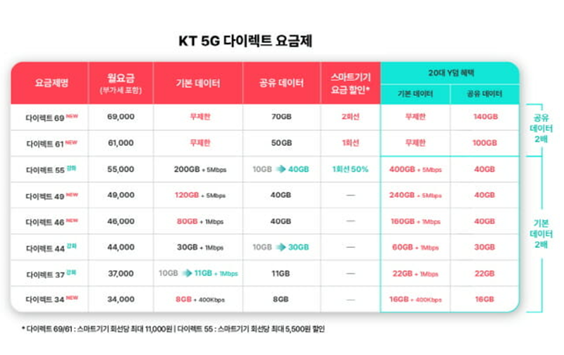 KT의 이 요금제들은 어떤 요금제인지 살펴볼게요.
